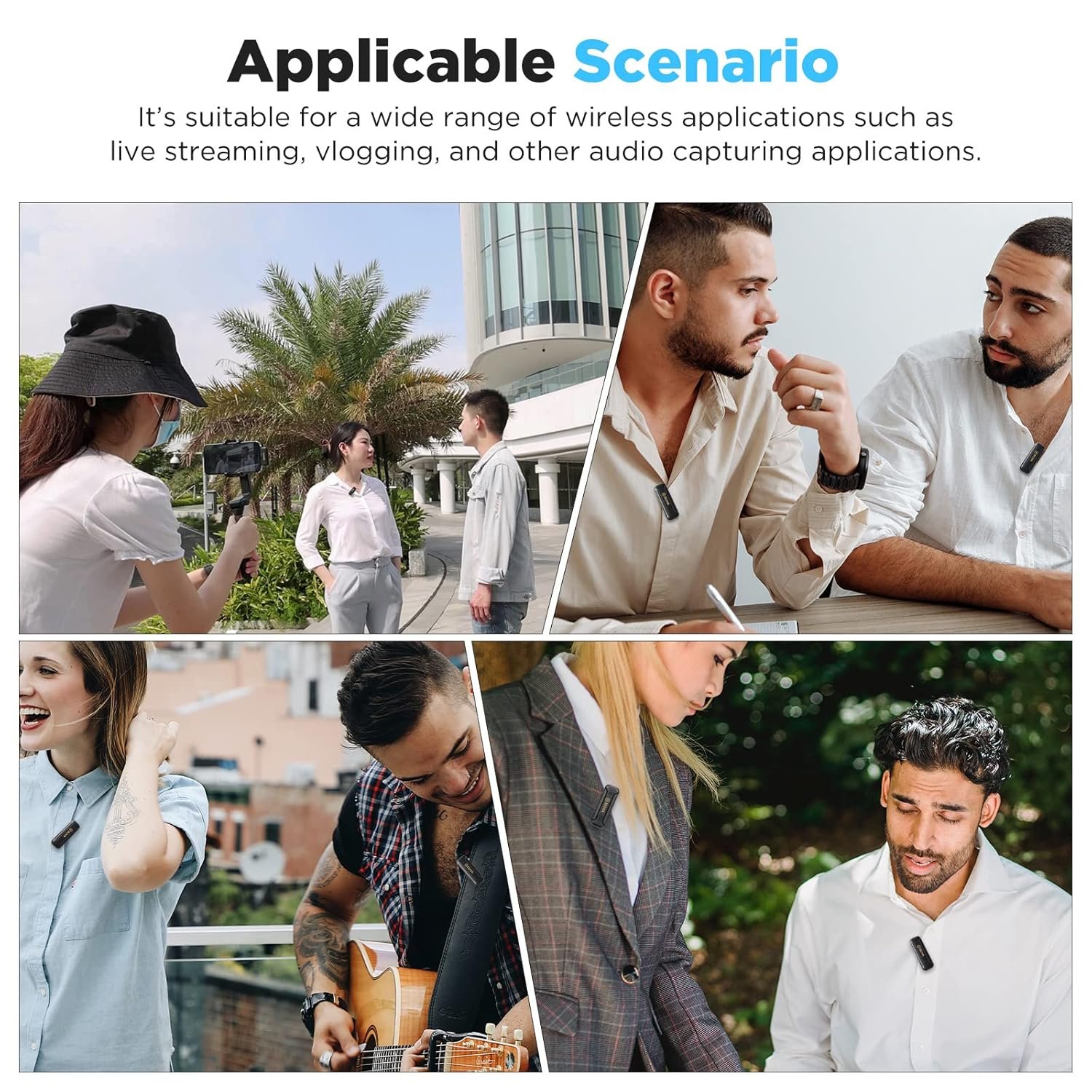 • 【Omnidirectional Microphone】: This Mini Wireless Microphone kit is equipped with High Density Spray-proof Sponge and High-sensitivity Microphone, our device clearly records every detail of the sound regardless of surrounded environment.