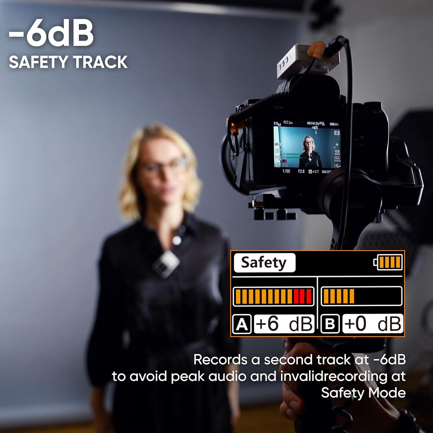 - 【Mono/Stereo Output; Safety Channel】Wireless Microphone BoomX-D_Pro Not only can choose Mono output and Stereo output, but also have a safe sound track output recorded at -6dB. This can effectively avoid peak audio and invalid recording, and is suitable for live stream, online meeting, online teaching, music recording, podcast, interview, video recording, TikTok Youtube live etc.