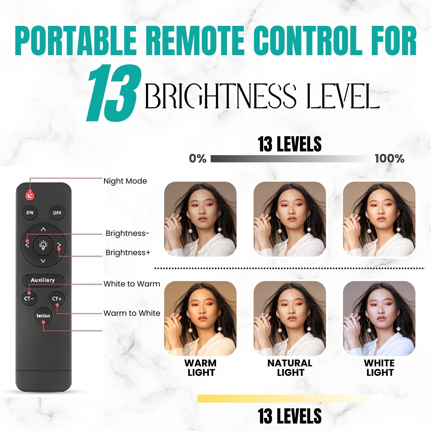 • 📸 [ADJUSTABLE COLOUR TEMPRATURE AND BRIGTHNESS, CRI 95+] Using the remote control, you can adjust the brightness (0%-100%) and two colors (2700K-5700K) as needed. CRI> 95 can achieve true color reproduction and clear images. ✔️