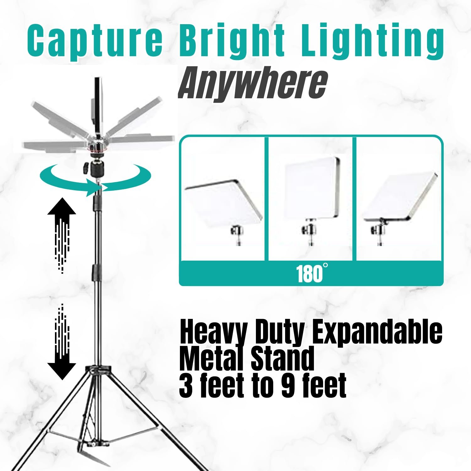 • 📸【LIGHT STAND COMPATIBILITY】1/4″ Screw tip on the stem, standard light stand mount for use with any light head, such as reflectors, softboxes, lights, umbrellas, backgrounds, strobe flash lights and so on.