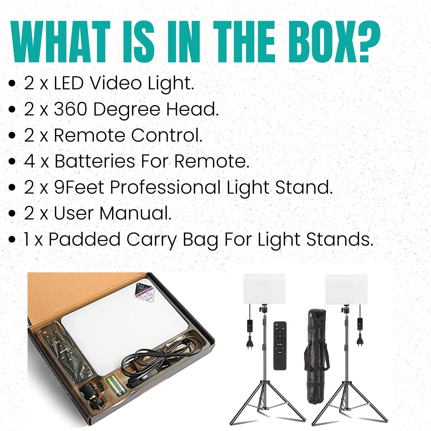 • Comes as a kit (2 lights + stands + carry bag + remotes) — excellent value for creators who need full setup.