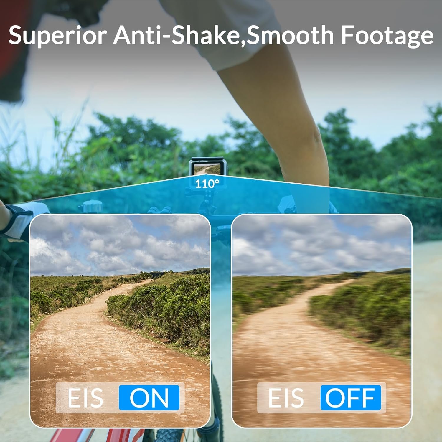 【4K 60FPS Ultra HD Action Camera】Professional 4K 60fps & 2.7K 60fps video(60fps is only available when EIS is turned off.)and 20MP photos provide up to 30 frames per second, delivering exceptional photo quality that is four times higher in resolution compared to standard HD cameras. This makes it an ideal choice for vlogging, capturing every detail in stunning clarity whether you’re on a surf adventure or a bicycle ride.