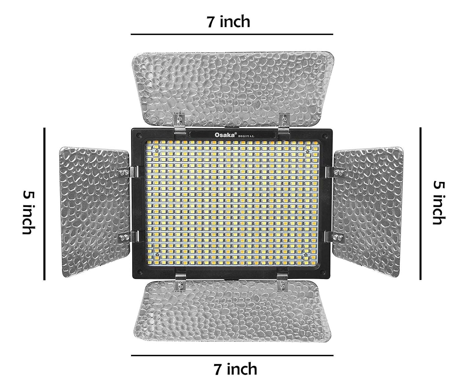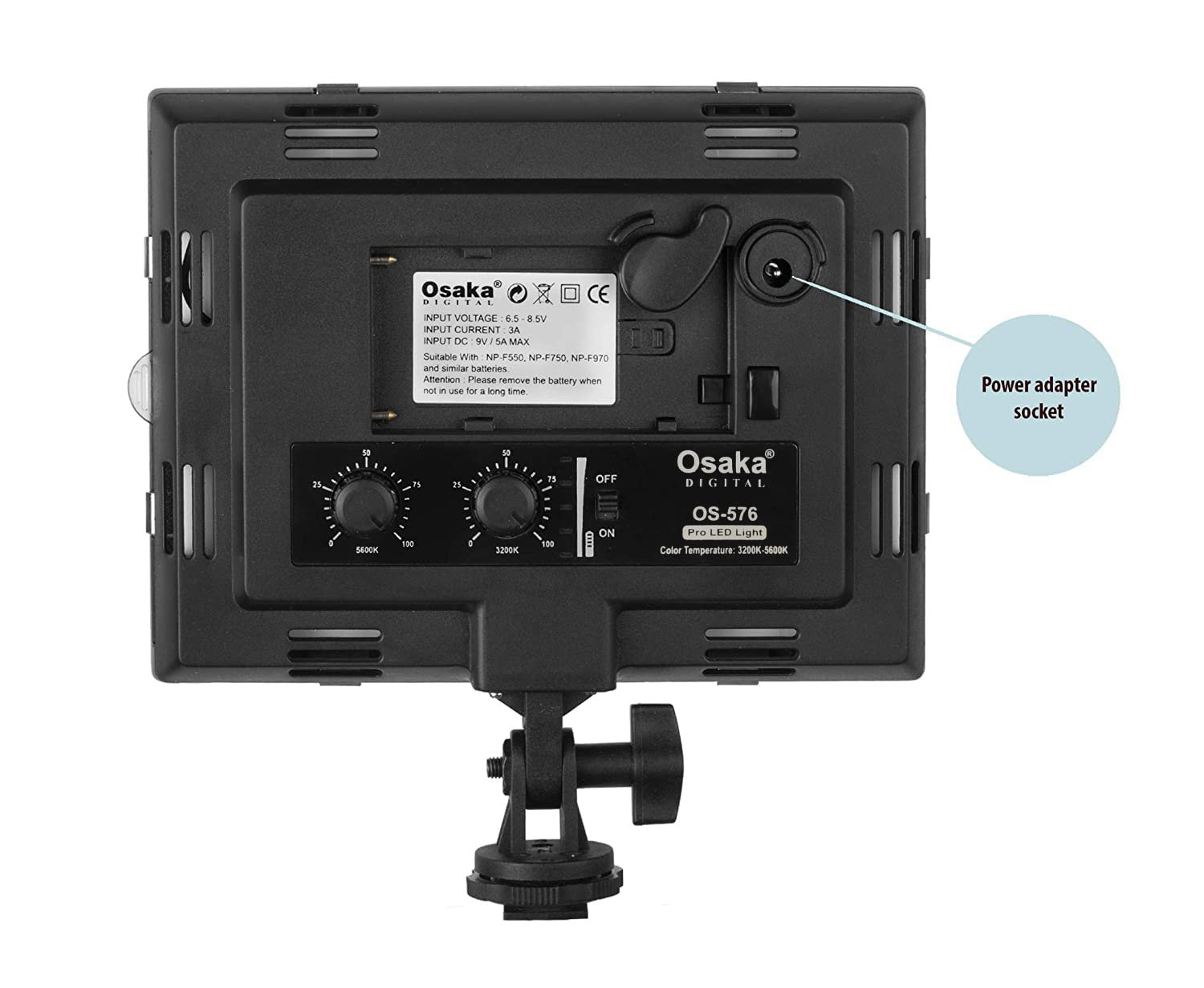 Max Power: 30 watt (Dimmable) ; Max Illumination : 2450 Lux/1M ; Number of high bright LED`S : 576 nos ; Color Temperature : 3200K~5600K (Adjustable) ; Dual Power Input : 7.4 Volt Battery (included in the kit) or 9V/5amp DC Adapter (not included in the kit).