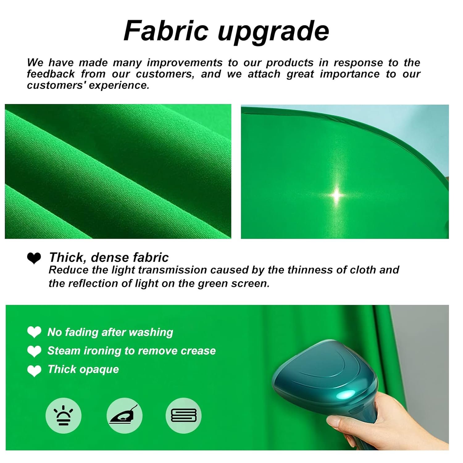 • WRINKLE RESISTANT BACKDROP:The green screen background is made Hight quality Flocking Materia, Wrinkle-resistant Green Screen optimized for Camera Chroma keying; the design ensures the green screen is free from wrinkles, dust or defects. Super easy to remove the background in post production in Photoshop and changing different shooting scene freely