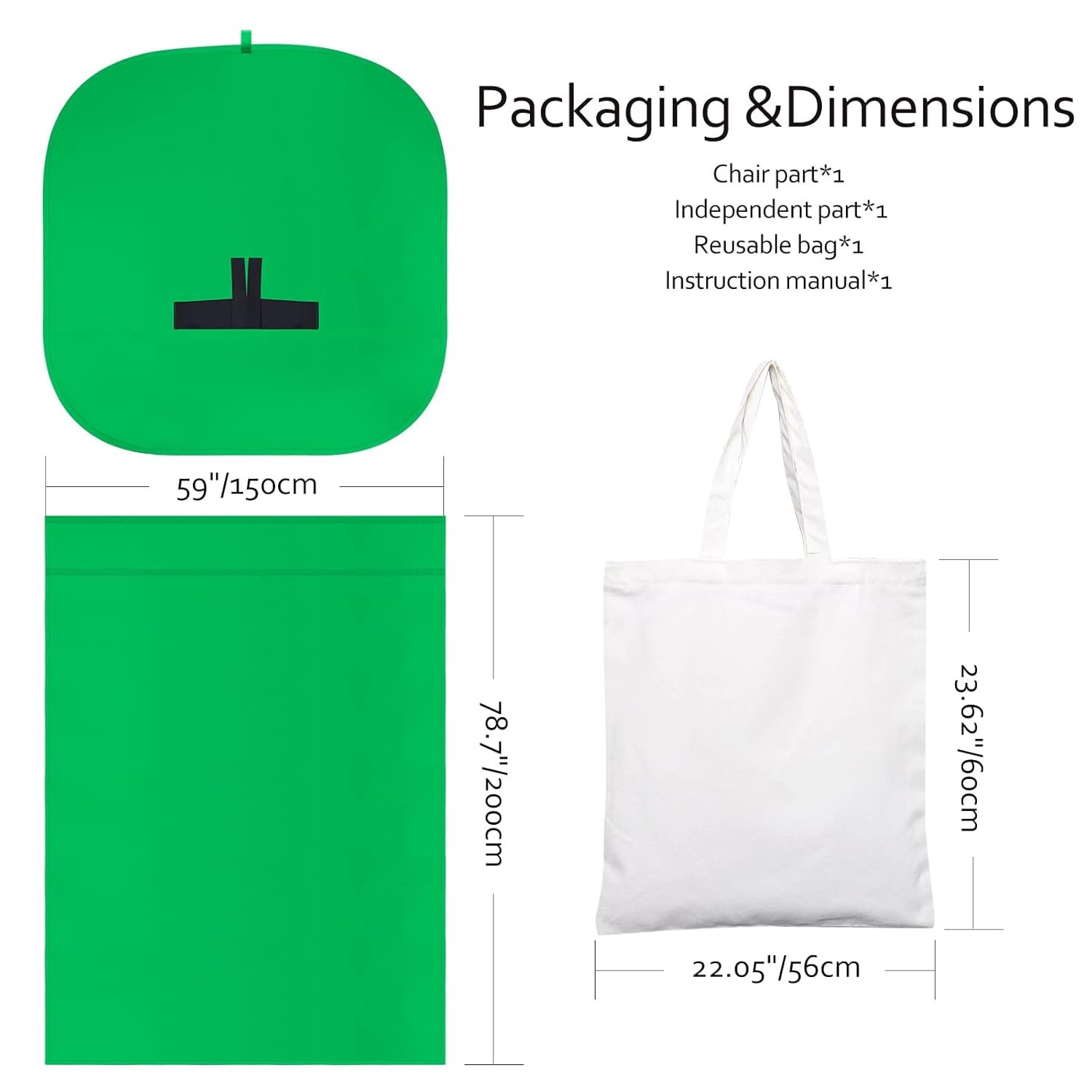 • LARGE AREA:multifunctional combined photography background, compatible with home office and full-body portrait shooting. The size of the green screen chair office chair is 60×60 inches, and the combined size is 4.92×9.51 feet