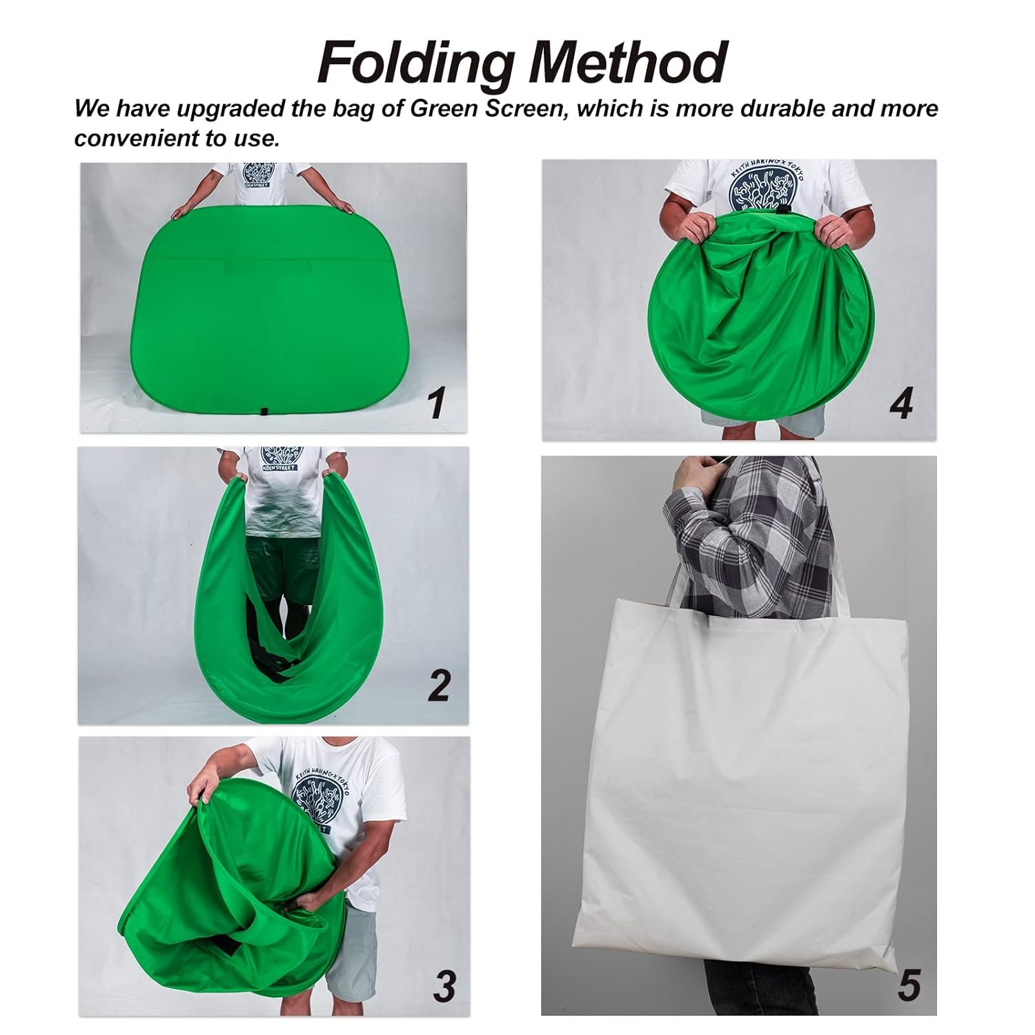 • COLLAPSIBLE GREEN BACKGROUND: When you’re done using the screen,and it can fold up small enough to put underneath anyone’s bed or couch, in a closet, or wherever so it’s out of the way. Comes with a carrying bag for convenient storage and easy transport